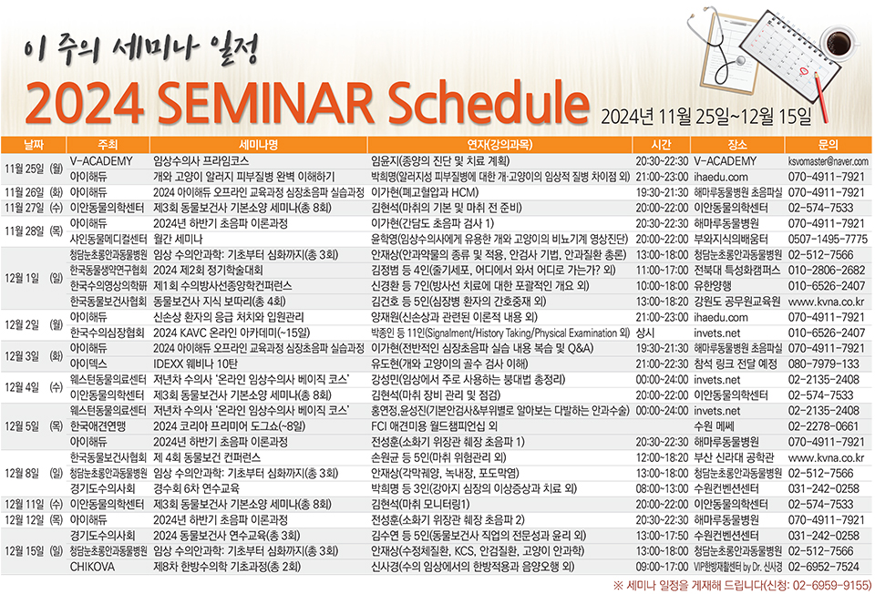 [세미나 캘린더] 2024년 11월 25일~2024년 12월 15일