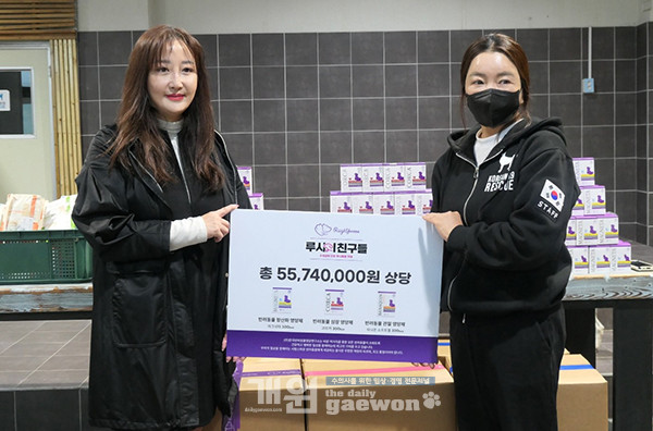 ㈜한국반려동물영양연구소(대표 정설령)가 동물보호 연합단체 ‘루시의 친구들’에 5,574만 원 상당의 프리미엄 영양제 브랜드 ‘닥터레이(Dr.Ray)’ 영양제를 기부했다.