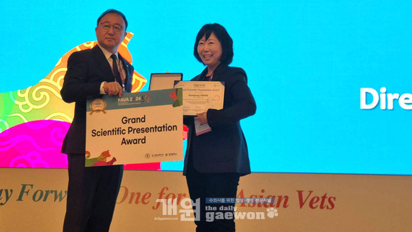 홍연정(웨스턴동물의료센터) 원장이 ‘제23차 아시아·태평양수의사대회(대회장 허주형, 이하 FAVA 2024)’에서 ‘학술발표대상(Grand Scientific Presentation Award)’을 수상했다.