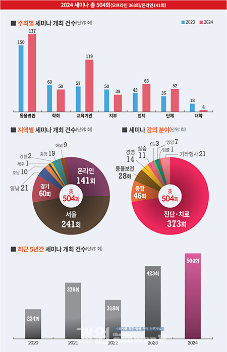 세미나 개최 장소가 서울과 수도권에 집중되면서 지역 세미나에 대한 니즈도 커지고 있다. 업체와 동물병원들이 해당 지역에서 세미나를 개최하며 큰 호응을 얻고 있어 앞으로 지역 세미나는 더욱 활성화될 것으로 보인다.