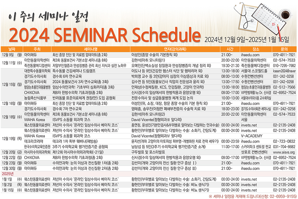 [세미나 캘린더] 2024년 12월 9일~2025년 1월 15일