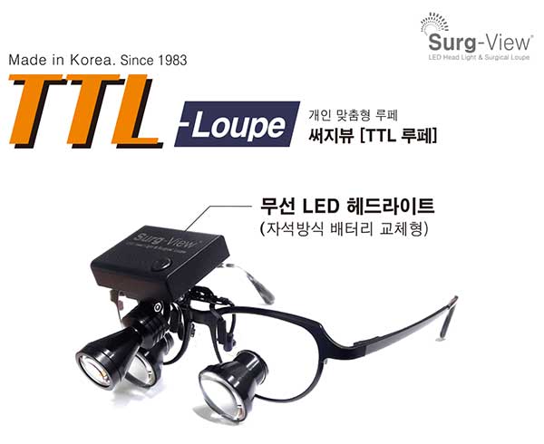 ‘써지뷰 TTL 루페’는 미세한 구강 부위까지 판별이 가능한 초경량 개인 맞춤형 루페로 최고급 독일산 렌즈와 다중 반사방지 코팅으로 선명하고 깨끗한 시야를 제공한다.