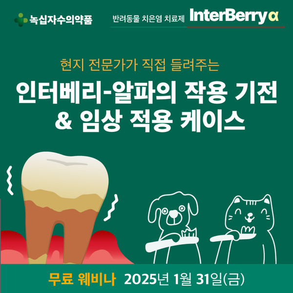 녹십자수의약품(대표 나승식)이 반려동물 치은염 치료제 ‘인터베리-알파’를 주제로 한 웨비나를 오는 1월 31일(금) 개최한다.