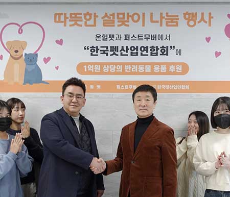 펫전문기업인 온힐펫(대표 류태성)과 퍼스트 무버가 지난 1월 23일 송도에 위치한 온힐펫 본사에서 설맞이 나눔행사를 진행했다. 이번 행사는 온힐펫과 퍼스트무버가 1억 원 상당의 반려동물 용품을 (사)한국펫산업연합회(회장 이기재, 이하 연합회)에 기부하는 형식으로 이뤄졌다.