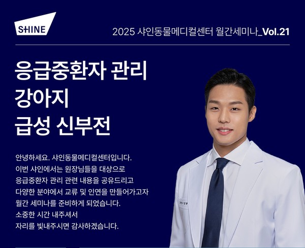샤인동물메디컬센터가 2월 ‘월간 세미나’를 2월 27일(목) 오후 8시부터 10시까지 송파구에 위치한 부와지식의배움터에서 개최한다.