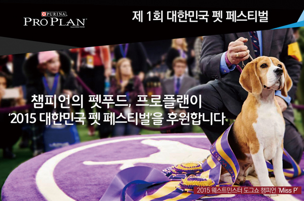 네슬레퓨리나의 전문점용 최고급 브랜드 ‘프로플랜’이 오는 5월 29일(금)부터 31일(일)까지 3일간 일산 킨텍스 제2전시장에서 열리는 ‘2015 대한민국 펫페스티벌’ 메인 후원사로 참여한다.