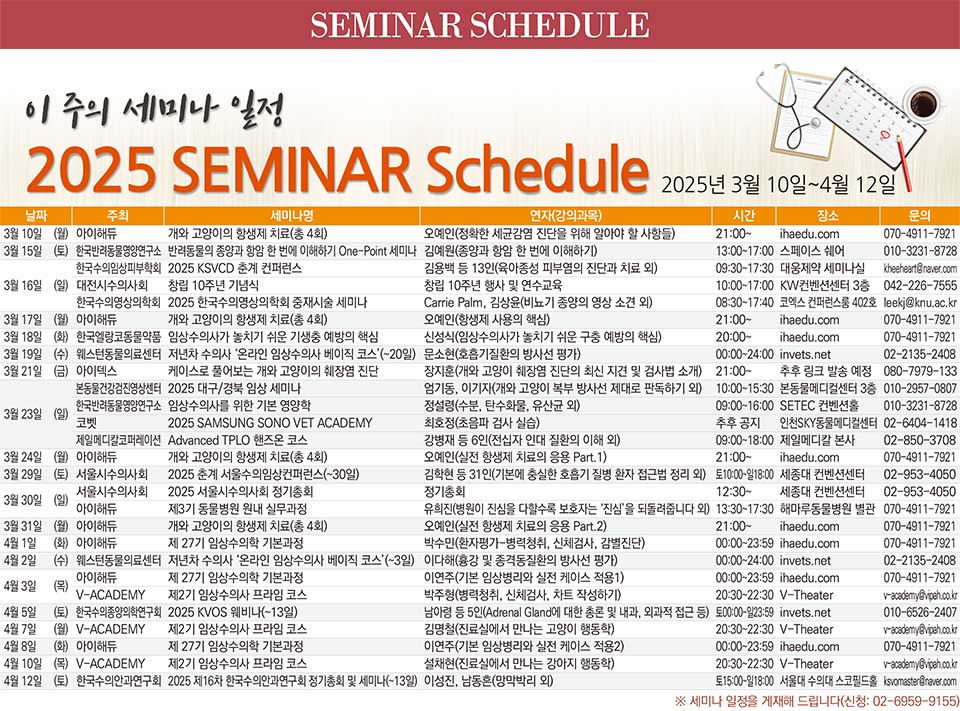 [세미나 캘린더] 2025년 3월 10일~2025년 4월 12일