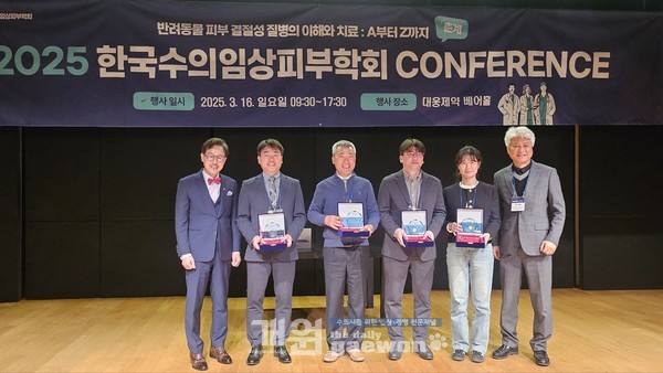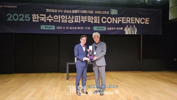 한국수의임상피부학회(회장 강종일, 이하 KSVCD)가 지난 3월 16일 열린 ‘2025 KSVCD 춘계 컨퍼런스’에서 KSVCD 발전에 혁혁한 공로와 재임 기간 헌신한 회원들을 위한 표창 및 감사패 수여를 진행했다.