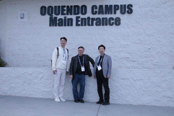 드디어 3월 1일 WVC가 개최되는 Mandalay Bay Convention 등록처에 등록한 후 배지와 안내 책자 및 홍보물 등을 수령하고, 부스 설치 미비로 인해 일부 부스만 둘러보고 나오던 중 WVC Andrea Davis CEO와 Tony Peace 사무총장을 만났다. 그들에게 Oquendo Campus Training Center 참관 협조를 요청하자 흔쾌히 승낙했다.