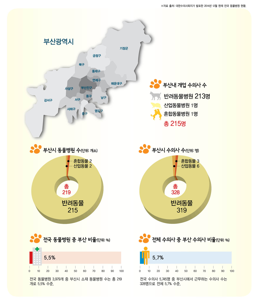 부산내 동물병원 219개·수의사 328명 전국 병원 중 5.5% 분포 … 전체 수의사 중 5.7% 불과 저작권자 © 데일리개원 무단전재 및 재배포 금지 개원 다른기사 보기 페이스북 트위터 URL복사 네이버라인 기사공유하기
