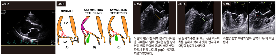 기침증상으로 내원한 MMVD 환자의 경식도 초음파를 보았더니, 양쪽 flail이 확인되었다[사진 5].