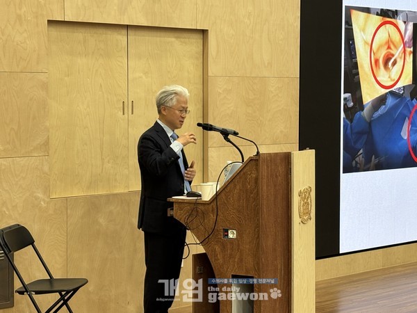정만복 회장은 개회사를 통해 “이번 세미나는 국내 수의안과 1세대가 이룩한 업적을 되돌아보는 뜻깊은 자리”라면서 “그동안 다루지 못했던‘ 망막 박리의 원인 및 수술적 치료’를 주제로 선정하고, 이를 위해 순천향대학교 이성진 교수와 가천대학교 남동흔 교수를 초청해 사람 안과에서 망막 박리의 발생 양상과 최신 수술 기법을 소개하며, 개의 망막 박리 수술의 현주소를 확인하는 뜻깊은 시간이 될 것”이라고 말했다.