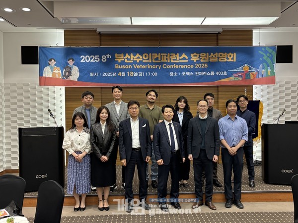 부산시수의사회(회장 이영락, 이하 부산지부)가 ‘2025 제8회 부산수의컨퍼런스 후원 설명회’를 지난 4월 18일 코엑스 컨퍼런스룸 403호에서 개최했다.