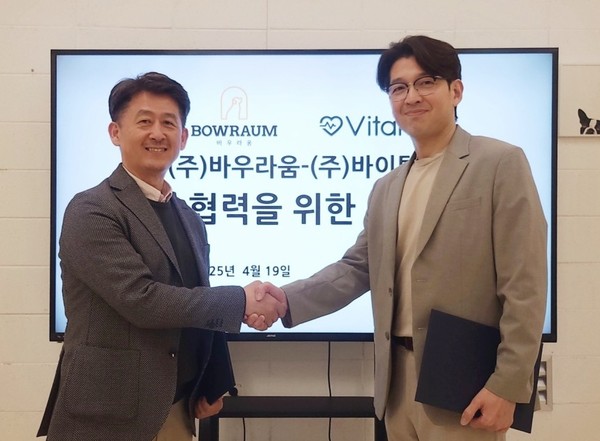 프리미엄 펫 헬스케어 기업 바이탈펫이 지난 4월 19일 반려동물 토탈 케어 서비스 기업 바우라움과 반려동물 비즈니스 컨설팅 및 헬스케어 솔루션 공동사업을 위한 업무 협약을 체결했다.