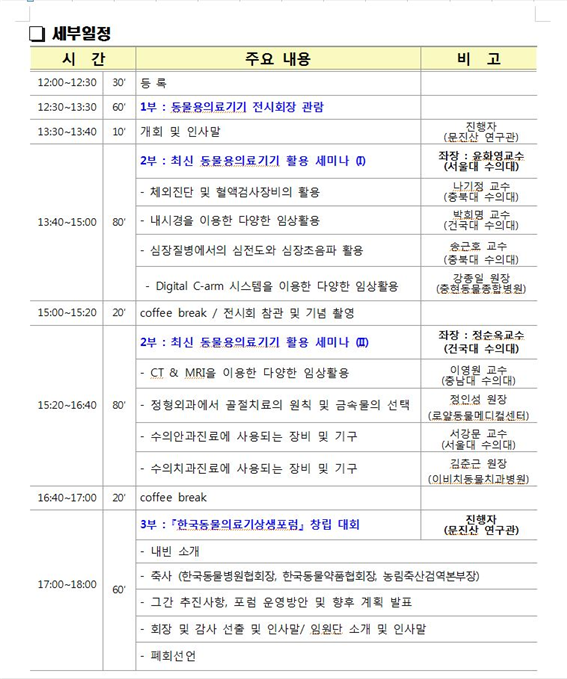 한국동물의료기 상생 포럼 준비위원 일동 드림.