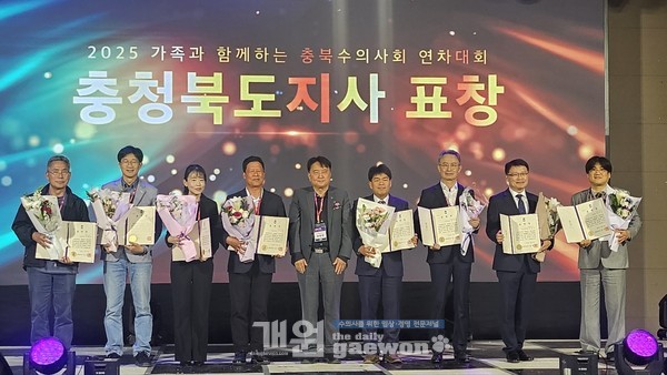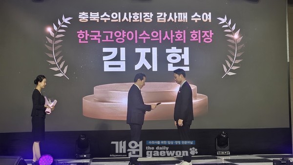 충청북도수의사회(회장 이승근, 이하 충북지부)가 지난 4월 27일 열린 ‘2025 가족과 함께하는 충북지부 연차대회’ 웰컴 리셉션에서 표창패 수여를 진행했다.