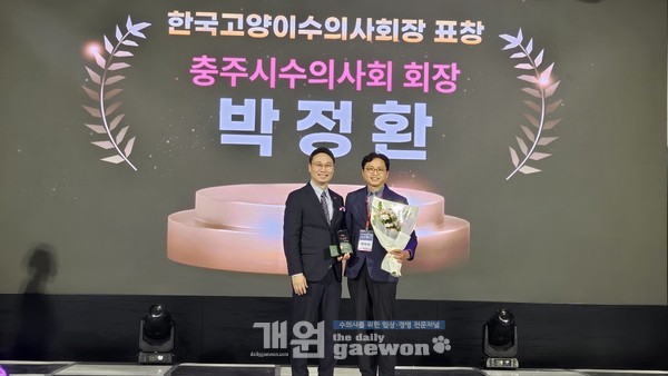 이날 시상식에서 ‘충북도지사 표창’은 윤화영(우리동물병원)·안성웅(바로동물병원)·손융성(참좋은동물병원)·이삼선(이즈동물병원)·최충묵(우리동물병원)·송종식(캣앤독동물병원)·전귀호(수동물병원) 원장과 이상명(충북대 수의대) 교수가 영예를 안았으며, ‘대한수의사회 표창’은 김성수(우리동물병원) 원장에게 돌아갔다.