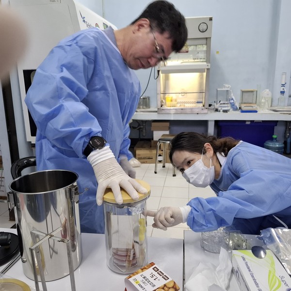 지난 5월 3일 국경없는수의사회 라오스 지부(지부장 박용승)는 브루셀라균(Brucella spp.) 진단 체계 구축을 위해 전보영(연세대) 교수팀을 라오스에 초청했다. 전보영 교수는 NUOL 수의과대학 실험실에서 브루셀라균 배양 및 검사에 필요한 기초 실험장비 세팅과 실무 교육을 직접 진행하며, 배양기·항온수조·클린벤치 등의 장비 사용법과 실험 절차, 시료 전처리, 그람염색법, 생물안전관리(Biosafety) 지침 등을 전수했다.