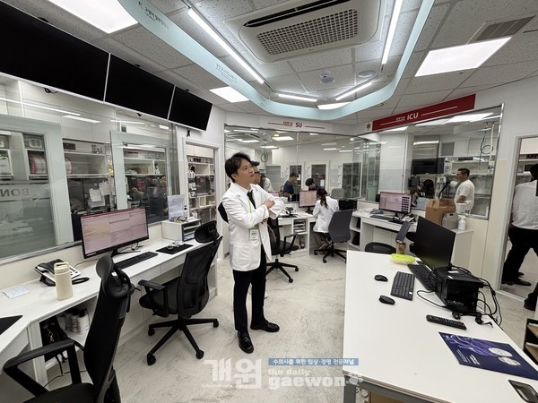 2층은 내과와 영상진단센터, 입원 병동 및 응급실로 이뤄졌다. 특히 중앙모니터링스테이션은 입원실과 중환자실, 준중환자실이 한눈에 보일 수 있도록 공간을 구성했으며, 중환자들에게 산소 농도를 조절해 공급해주는 ‘옥서스 인터시스템’이 설치돼 있다.