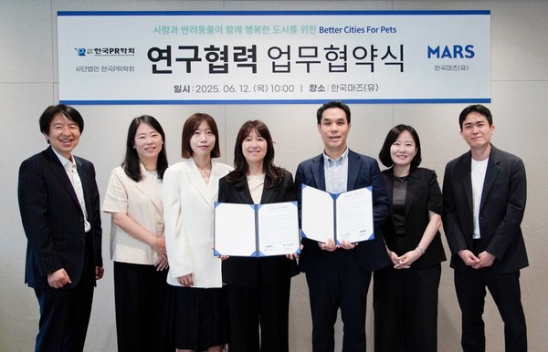 한국마즈(대표 이두호)가 지난 6월 12일 한국PR학회(회장 유선욱)와 ‘사람과 반려동물이 함께 행복한 도시’를 위한 업무협약을 체결했다. 이번 업무협약은 마즈의 글로벌 프로젝트인 ‘반려동물을 위한 더 나은 도시(Better Cites For Pets, 이하 BCFP)’의 국내 실행을 위해 진행됐다.