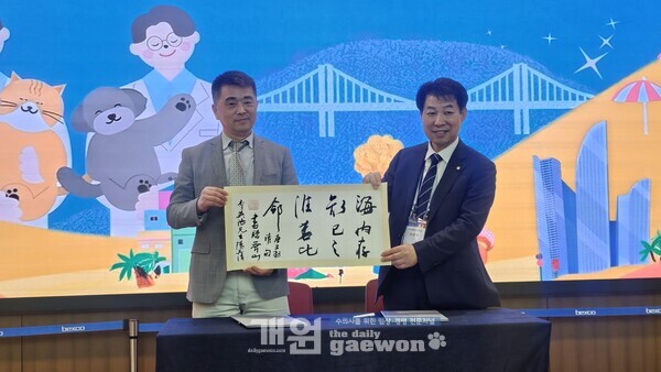 또한 부산지부는 현장에서 상하이동물병원협회(杨其清)(회장 양치칭 yang qiqing) 및 선전시소동물수의사회(喻信益)(회장 위신이 yu xingyi)와 자매결연 협약서에 사인하며 글로벌화를 위한 입지를 다졌다. 양 회는 양 지역의 수의학 발전과 우호 증진을 위해 교류와 협력을 추진하기로 했다.