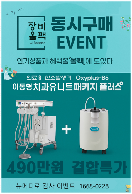 이동형 ‘치과 유니트 패키지 플러스’와 의료용 산소발생기 ‘Oxyplus-B5’ 포함 올팩 동시 구매 시 490만원 할인 이벤트