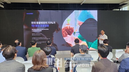오이세 대표는 동물병원 현황과 매출 자료를 제시하면서 전국 5천여 개 동물병원 중 73%가 1인 병원으로 매출이 지속적으로 감소하고 있는 상황을 해결하기 위해 ‘코벳 클리닉 플러스’ 솔루션을 구축하게 됐다고 밝혔다.