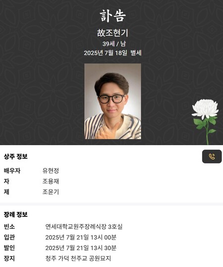발인: 2025년 7월 21일 13시 00분