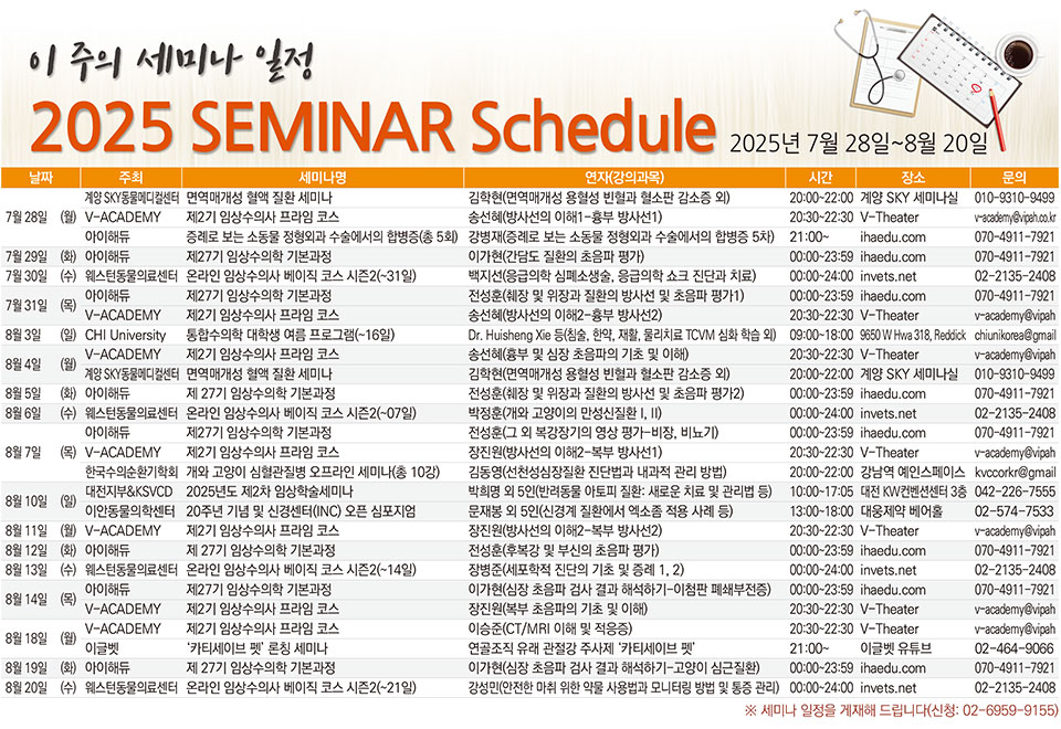 [세미나 캘린더] 2025년 7월 28일~2025년 8월 20일