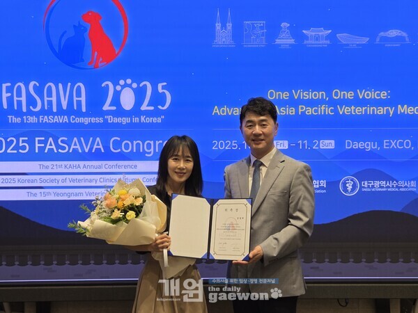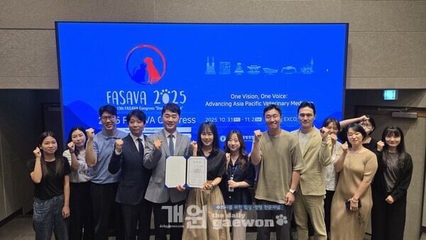 한편 제13차 ‘FASAVA 2025’는 전 세계 수의사들이 참여하는 국제 수의학 학술대회로 오는 10월 31일부터 11월 1일까지 대구 EXCO에서 개최한다. 한국동물병원협회와 대구시수의사회가 공동 주최한다.