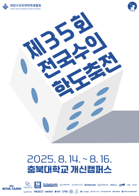 대한수의과대학학생협회(이하 수대협)이 주최하고, 충북대 수의과대학 제31대 학생회 ‘V:ENUS’가 주관하는 ‘제35회 전국수의학도축전(이하 전수축)’이 오는 8월 14일(목)부터 16일(토)까지 충북 청주 충북대학교 개신캠퍼스에서 개최된다.