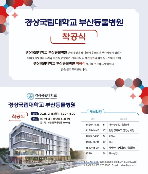 이번 착공식은 경상국립대 부산동물병원의 건립 추진 사실을 대내외에 공식화하고, 향후 병원이 지향하는 비전과 역할을 지역사회 및 유관기관과 공유하기 위해 마련됐다.