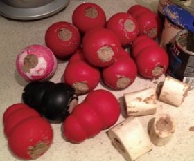 여러 가지 간식을 채워 넣을 수 있는 장난감들을 미리 많이 준비해 두었다가 강아지를 진정시킬 때나 혼자 남겨둘 때 유용하게 사용하도록 하면 좋습니다.
