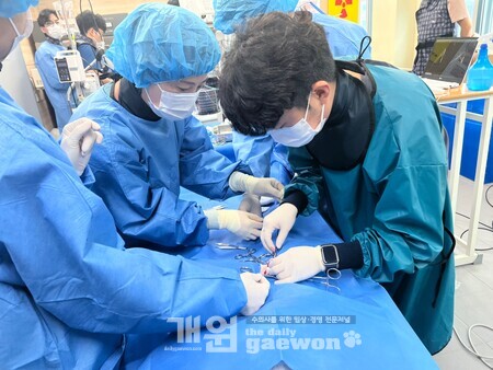실습을 진행한 박성용(계양스카이) 원장은 “수의중재술은 저희 계양스카이 병원에서도 동맥관 개존증 등 다양한 질환 치료에 활발히 활용하는 중요한 기술”이라며 “이번 워크숍을 통해 이론과 실전 경험을 한 차원 높일 수 있었고, 그동안 쌓아온 시술 경험을 여러 수의사 선생님들과 나눌 수 있어 매우 보람된 시간이었다”고 소감을 밝혔다.