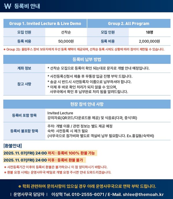 핸즈온 실습의 경우 수의사 3인 1조로 총 18명 모집하며, 이론 강의는 60명을 각각 선착순으로 모집한다.