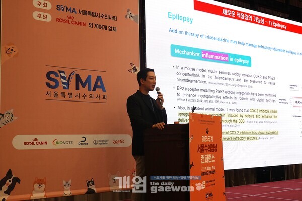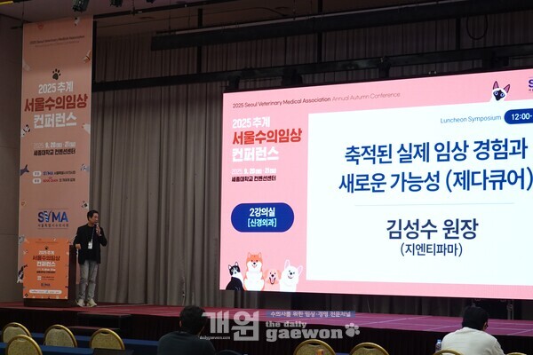 지난 9월 20일 서울 세종대학교 컨벤션센터에서 열린 ‘2025 추계 서울수의임상컨퍼런스’ 런천 심포지엄에서 김성수(VIP동물의료센터) 원장은 ‘제다큐어의 축적된 실제 임상경험과 새로운 가능성’을 주제로 한 시판 후 조사 결과를 발표해 주목을 끌었다.