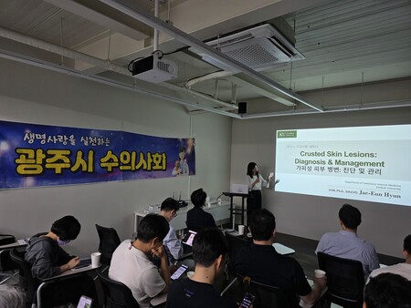 강연은 현재은(건국대) 교수가 맡았다. 낙엽성 천포창, 유년기 봉와직염, 간 피부 증후군 등 가피성 피부질환의 대표 사례를 집중적으로 다뤘고, 실제 임상 현장에서 접할 수 있는 증례를 중심으로 치료 전략을 심도 있게 다뤄 참가자들의 큰 호응을 얻었다.