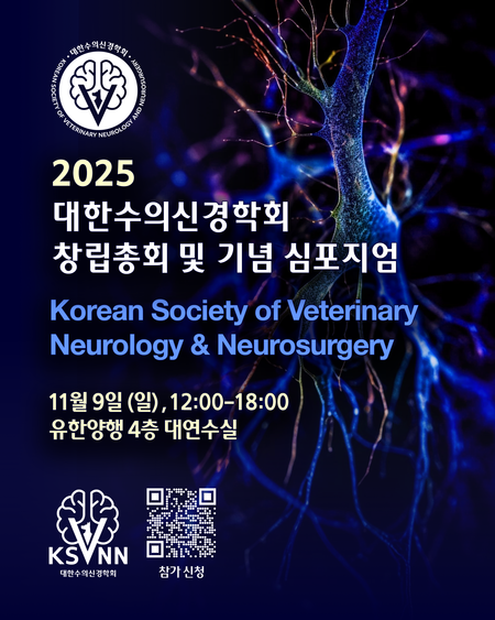 수의신경학회는 수의신경학 및 신경외과학의 발전을 목표로 신경내과, 신경외과, 신경영상의학을 아우르는 통합적 성장을 지향하는 학회다. 신경 분야에 관심 있는 수의사라면 누구나 정회원으로 가입 가능하며, 수의대 학부생도 학생회원으로 활동할 수 있다.