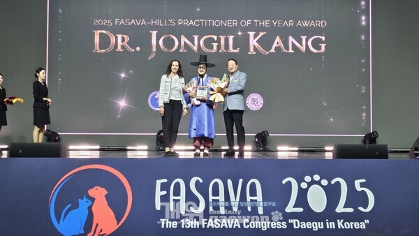 또한 강종일(한국수의임상피부학회) 회장은 대회 둘째 날 콩그레스 디너에서 ‘올해의 아시아태평양 임상수의사’로 선정되는 영예를 안았다. ‘파사바-힐스 어워즈’ 상으로 한국 수의사로서는 첫 수상이다. 강종일 회장은 2011년 WSAVA/FASAVA 콩그레스 조직위원장, 제3대 FASAVA 회장을 역임하며 국내외 소동물 임상수의사들의 교류와 협력에 기여한 바가 인정됐다. 회장 취임 당시 입었던 한복 차림으로 수상해 의미를 더했다.