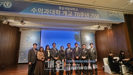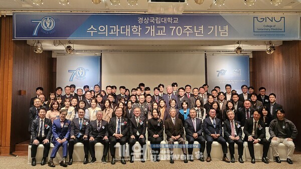 경상대학교 수의과대학 개교 70주년을 맞아 재경 경상국립대학교 수의과대학 동문회(회장 하지영)가 지난 11월 6일 오후 5시 서울 신라호텔에서 기념행사를 개최, 수의계 주요 인사들을 비롯해 동문 100여 명이 참석하며 개교 70년을 기념하는 뜻깊은 시간을 가졌다.