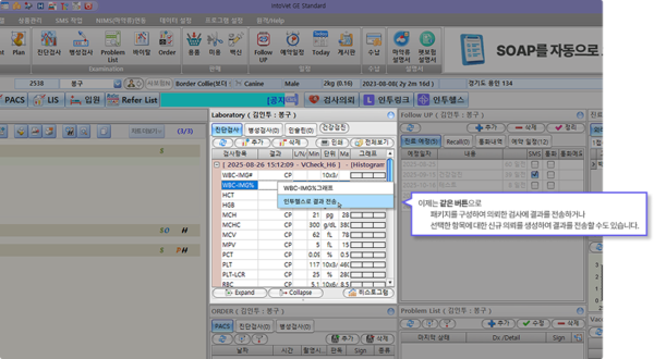 동물병원에서는 혈액·소변·영상검사 등 다양한 항목을 직접 해석하고 문서로 작성해야 해 종합검진 한 건당 1시간 이상 소요되는 경우가 많았다. 업그레이드된 ‘인투헬스’는 차트에서 클릭 한 번으로 검사 데이터를 전송할 수 있고, AI가 이를 자동 분석해 5분 이내에 전문 결과지를 완성해 준다.