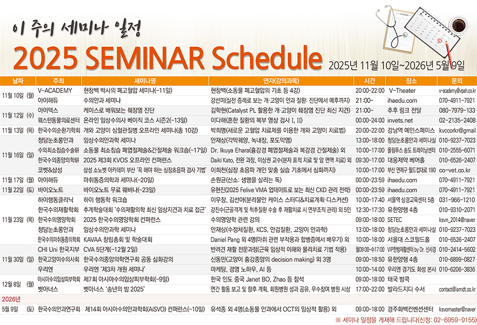 [세미나 캘린더] 2025년 11월 20일~2026년 5월 9일