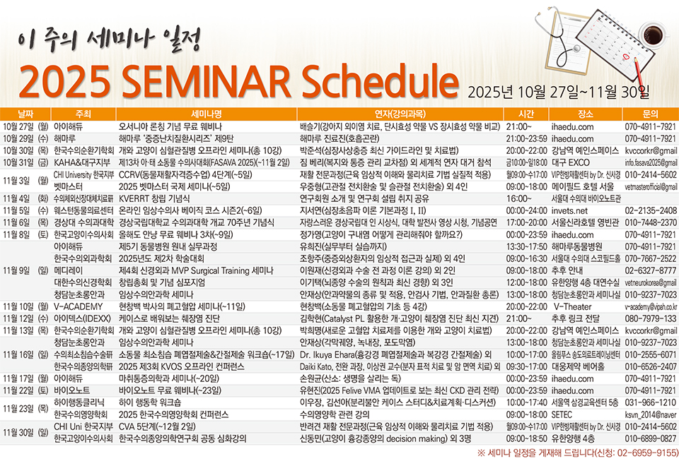 [세미나 캘린더] 2025년 10월 27일~2026년 11월 30일