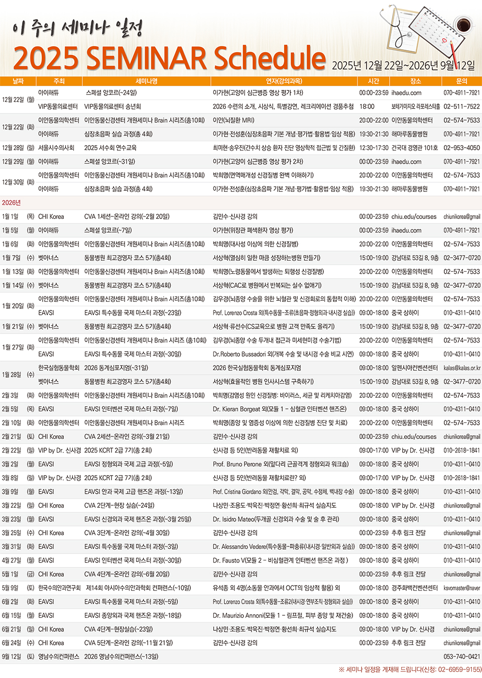 [세미나 캘린더] 2025년 12월 22일~2026년 9월 12일