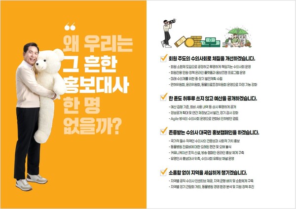 아울러 대국민 홍보 캠페인과 홍보대사 운영을 통해 수의사의 역할을 사회에 정확히 알리고, 재정 투명화와 회원 중심 행정을 구현하겠다. 모든 사업은 선언이 아니라 실행 가능성과 효과를 기준으로 추진하겠다.