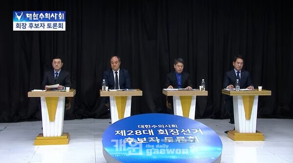 제28대 대한수의사회 회장선거를 앞두고 지난 1월 6일 열린 공식 후보자 토론회에서 네 명의 후보는 진료 규제 대응, 농장동물 자가진료, 반려동물 보험제도 등 주요 현안을 두고 각자의 입장을 밝혔다. 이번 토론회는 6일 오후 3시부터 1시간 30분간 대한수의사회 공식 유튜브 채널을 통해 진행됐다.