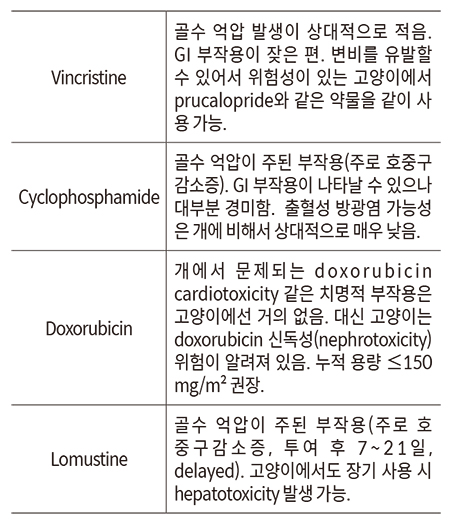 고양이에서는 doxorubicin의 경우 개와 달리 cardiotoxicity가 아닌 nephrotoxicity가 있다고 알려져 있다.
