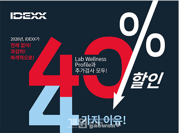 IDEXX가 2026년 새해를 맞아 IDEXX ‘Lab Wellness Profile’과 모든 Add-on 검사 항목을 40% 할인하는 전례 없는 캠페인을 시작했다.