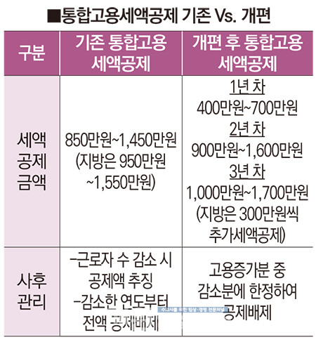 우선 올해부터는 근로자의 연차가 오를수록 세액공제금액이 높아진다. 또한 근로자 수가 감소를 해도 받았던 세액공제를 다시 내는 사후관리가 없어진다.