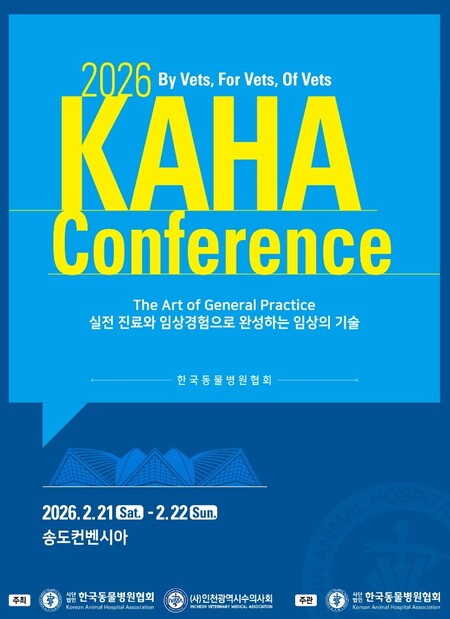 한국동물병원협회(회장 최이돈, 이하 카하)와 인천시수의사회(회장 박정현, 이하 인천지부)가공동 주최하는 ‘2026 카하 Conference’가 오는 2월 21일(토)부터 22일(일)까지 이틀간 인천 송도컨벤시아에서 열린다. 카하와 인천시수의사회가 처음으로 함께 여는 이번 컨퍼런스는 임상 현장에서 즉시 활용할 수 있는 실전 중심 프로그램을 전면에 내세운 것이 특징이다.